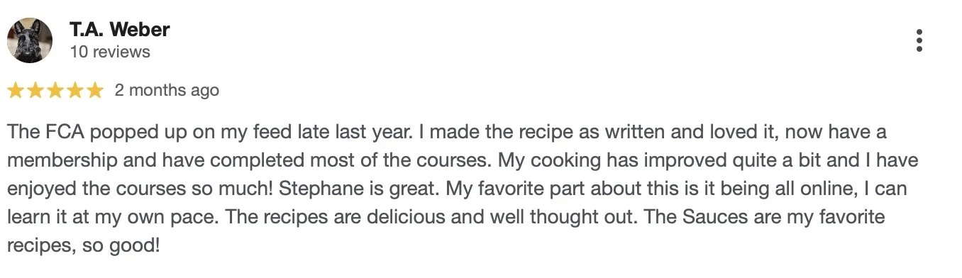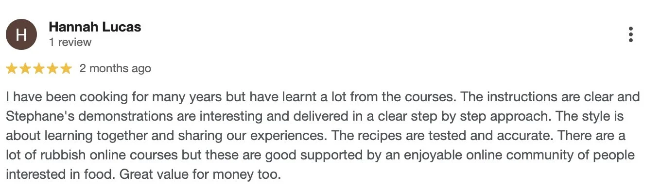 Home cooks around the world have rated the FCA Club 5 stars and it’s not just the recipes they love. From complete beginners to seasoned foodies, our students rave about the step-by-step lessons, the confidence they build in the kitchen, and the friendly, passionate community they get to be part of. It’s more than just cooking, it’s connection, support, and lots of delicious fun.