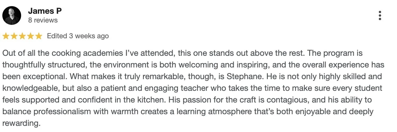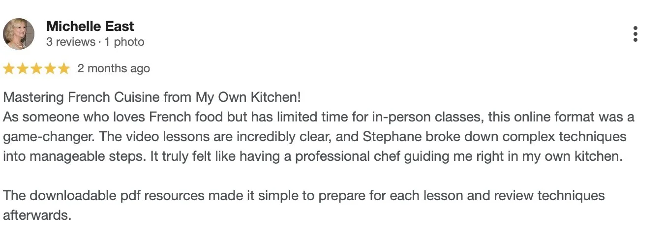 Absolutely! You'll learn many of the same techniques taught in French culinary schools but adapted for home cooking. Our focus is on efficiency—you'll master these techniques in a fraction of the time (and cost) of a culinary school and with Stéphane as your instructor, it'll feel like you're right in the classroom. Our courses are hands-on. While theory is covered, the emphasis is on practicing and applying what you learn—just like in a culinary school. Our course structure focuses on the most relevant French techniques to build your culinary toolbox. These techniques are precise, informative, and easy to follow. Mastering these foundational skills will transform your cooking skillset, revealing a world of delicious dishes—and all achieved in a fraction of the time you'd spend in a culinary school.