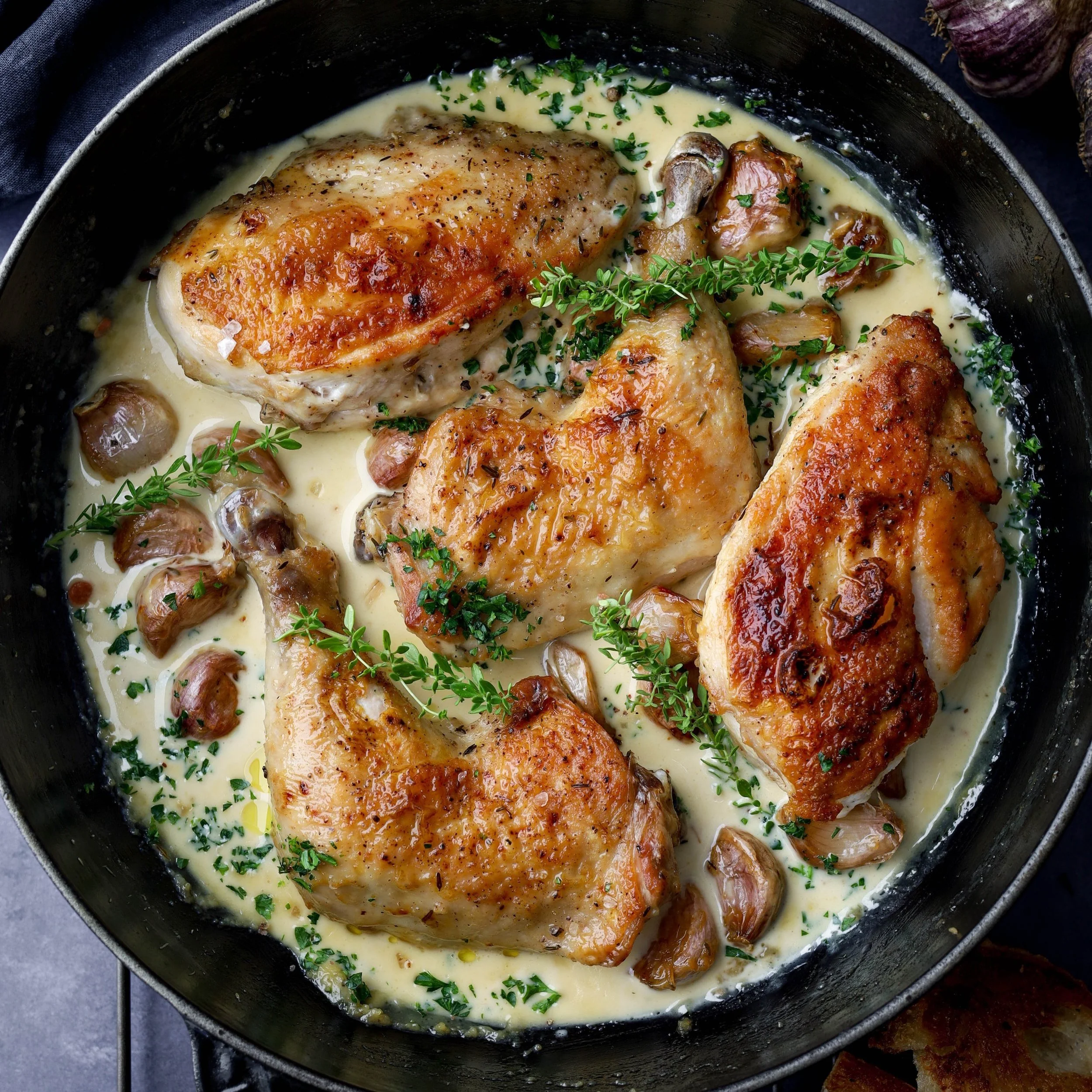 Yes, you read that right, this recipe calls for a generous 30 cloves of garlic but rest assured, there’s no peeling involved. The garlics are slow cooked in their sleeves along with chicken, wine, and cognac. To finish, I add cream to create a delicious instant sauce that complements the dish perfectly. Even if you're not a die-hard garlic fan, you'll be pleasantly surprised at how well-balanced the flavors are, with the garlic adding depth and richness to the dish without being overpowering.